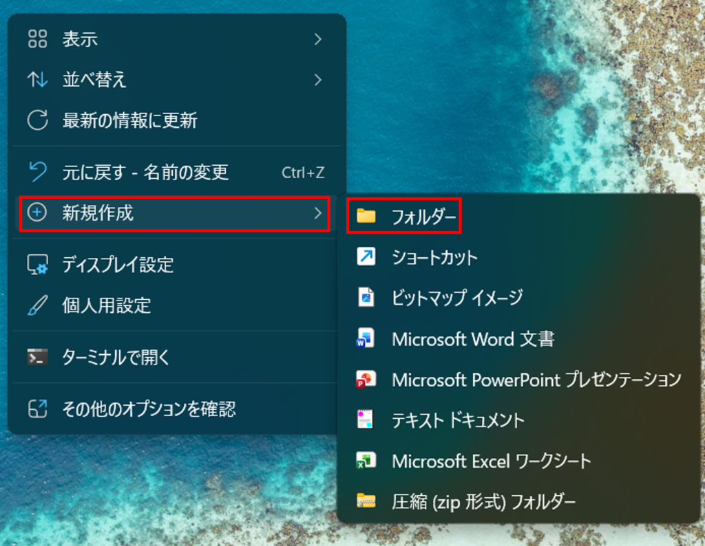 では実際にフォルダを作ってみましょう。Windowsの基本操作ですが、一度覚えると今後の作業効率が大きく上がります。