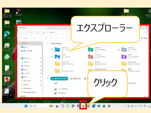 また、プログラミングの勉強でも、ソースコードのフォルダを開いたり、データを管理したりする際に必ずエクスプローラーを使います。そのため、今のうちに慣れておくことで後の学習がとてもスムーズになります。