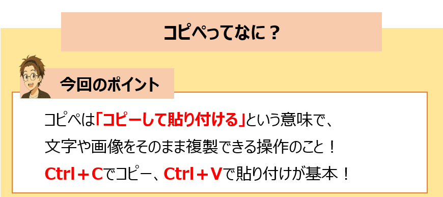 パソコン教室でもよく登場する基本操作のひとつに「コピペ」があります。