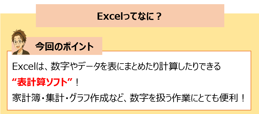 - Excelは表計算ソフトで、数字や文字を整理するのに最適