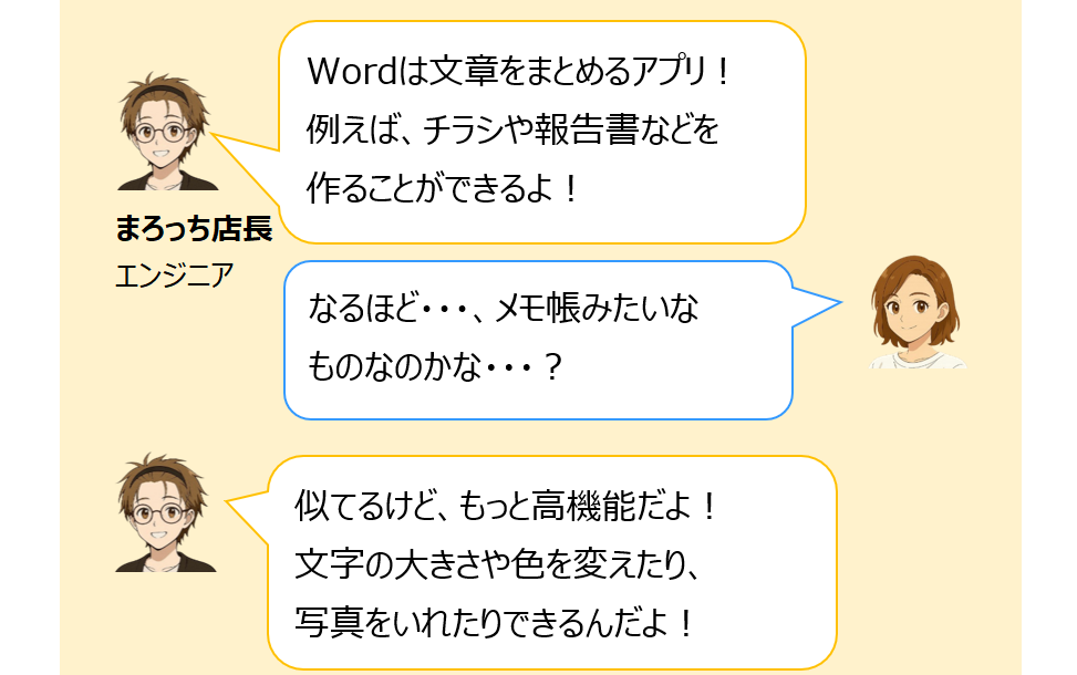 手書きの時代では、誤字の修正や体裁を整えるのに時間がかかりましたが、Wordなら数クリックで見た目を整えられます。文章作成の定番ソフトとして、学校・会社・家庭など幅広く使われています。