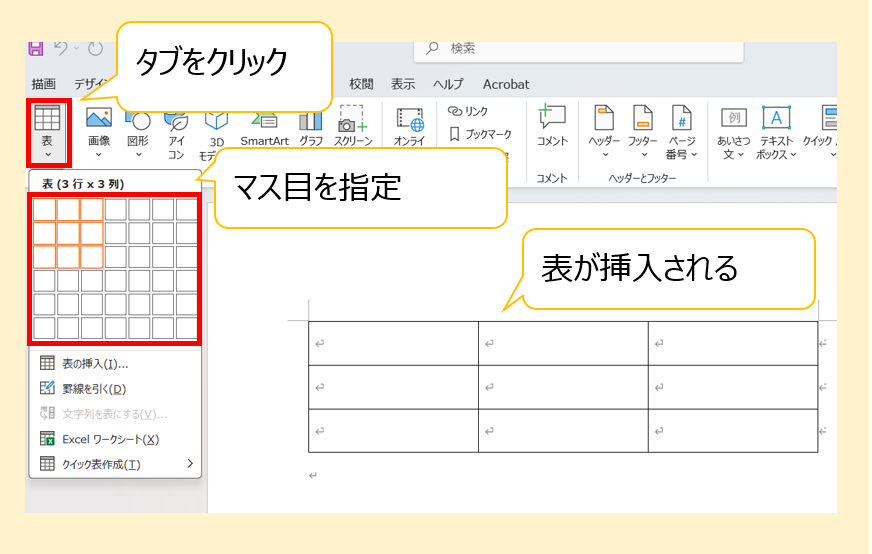 表を挿入した後の編集方法を覚えることで、さらに自由自在に資料を作れるようになります。
